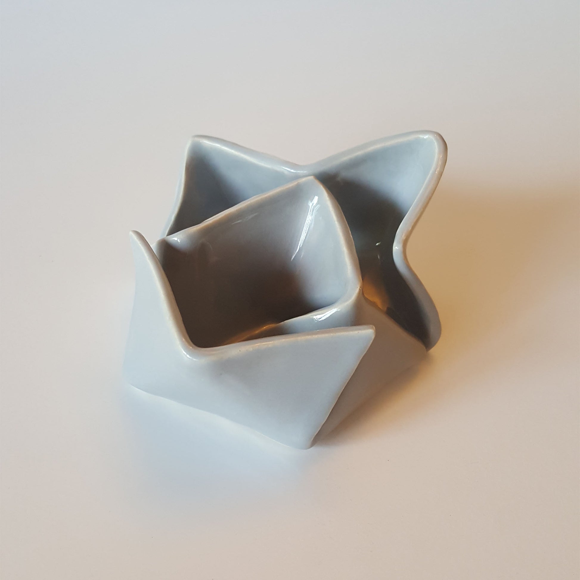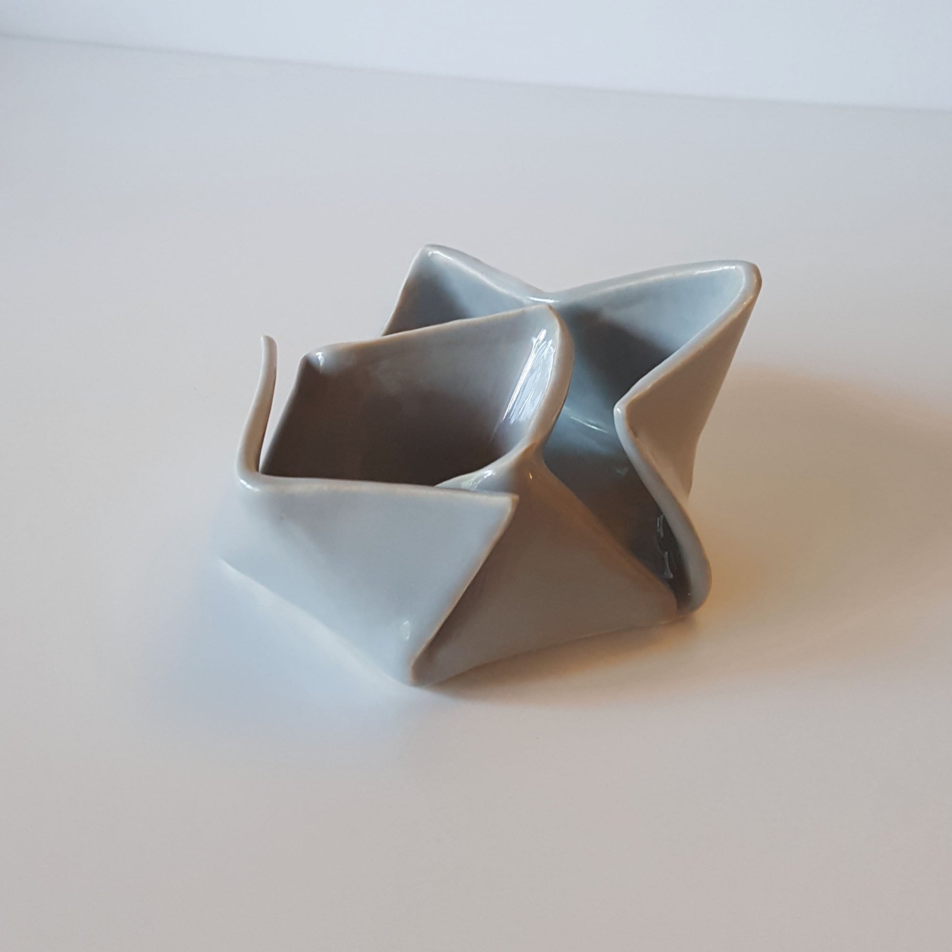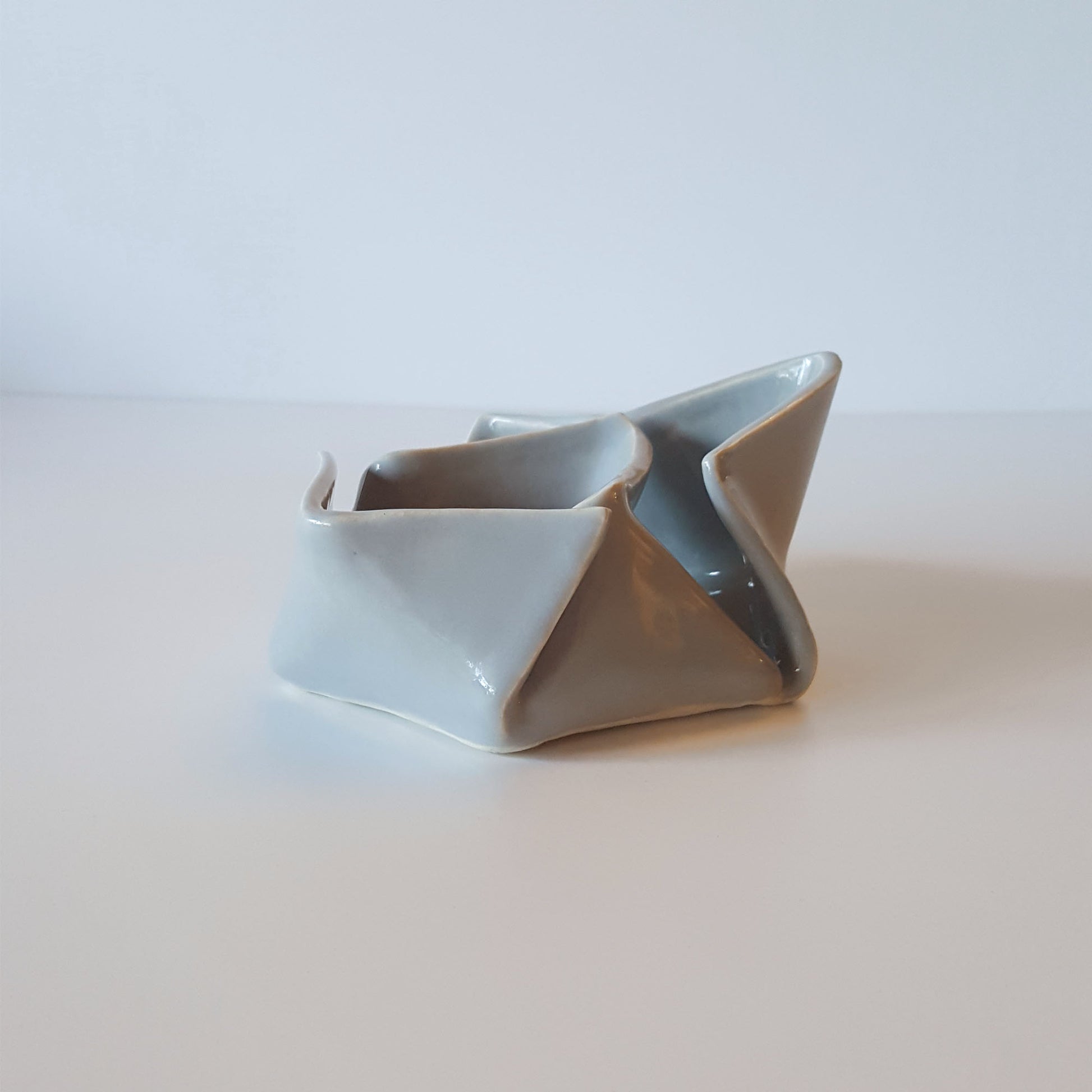 It is part of the Origami Series of handmade ceramic objects inspired by the art of paper folding.