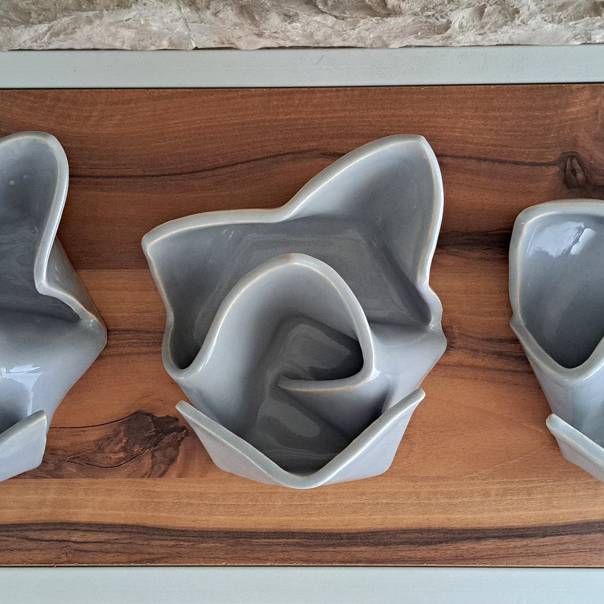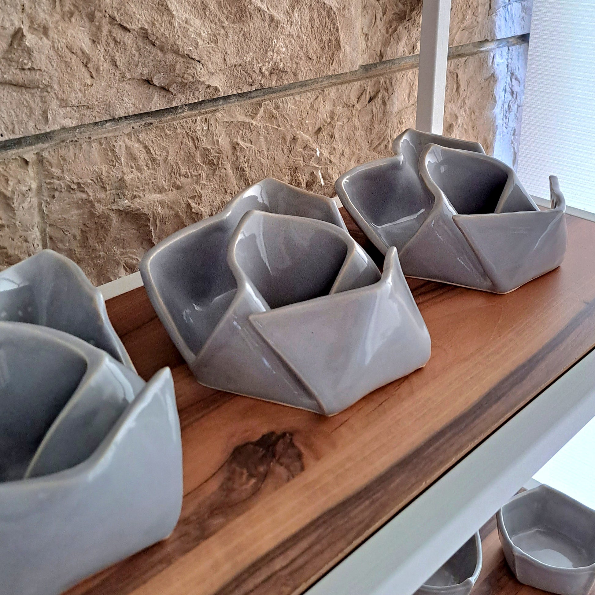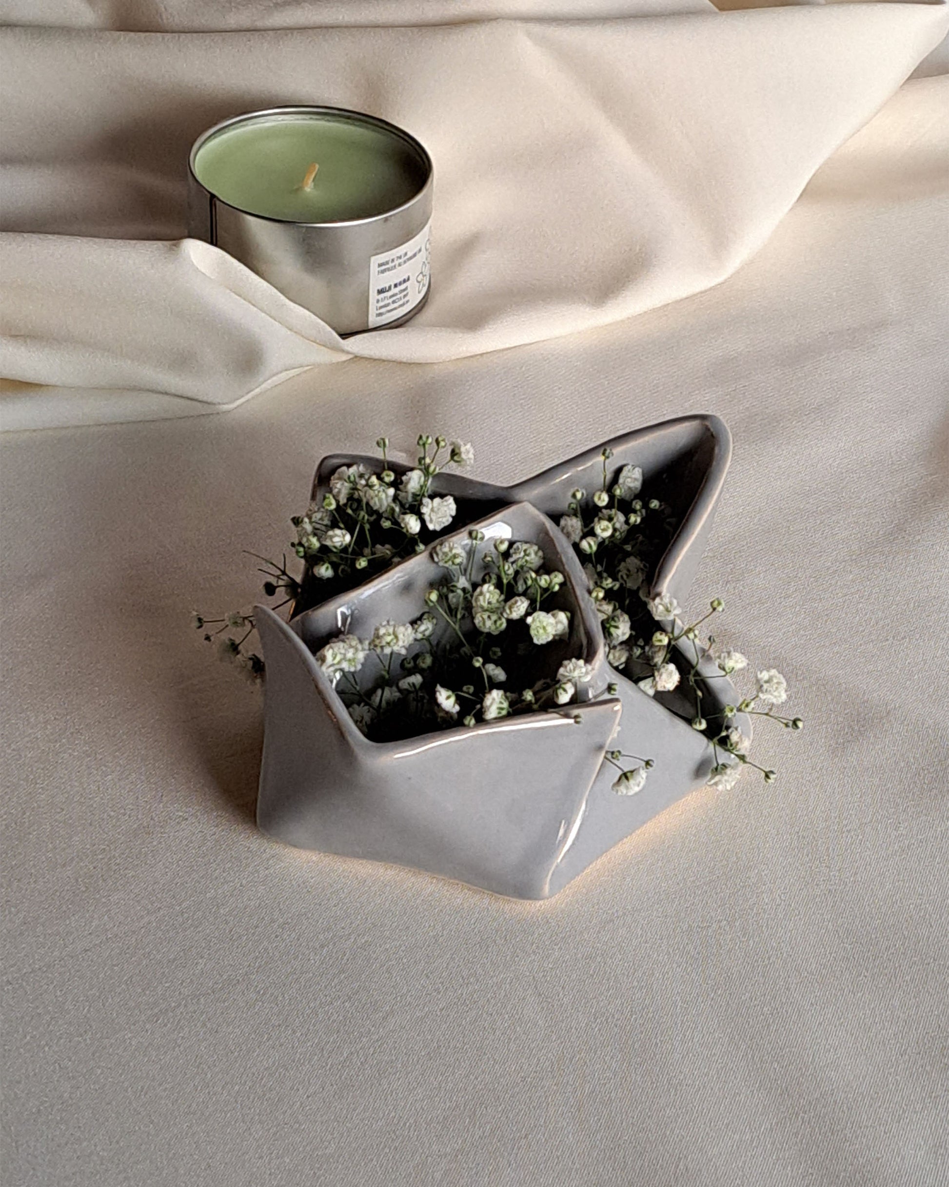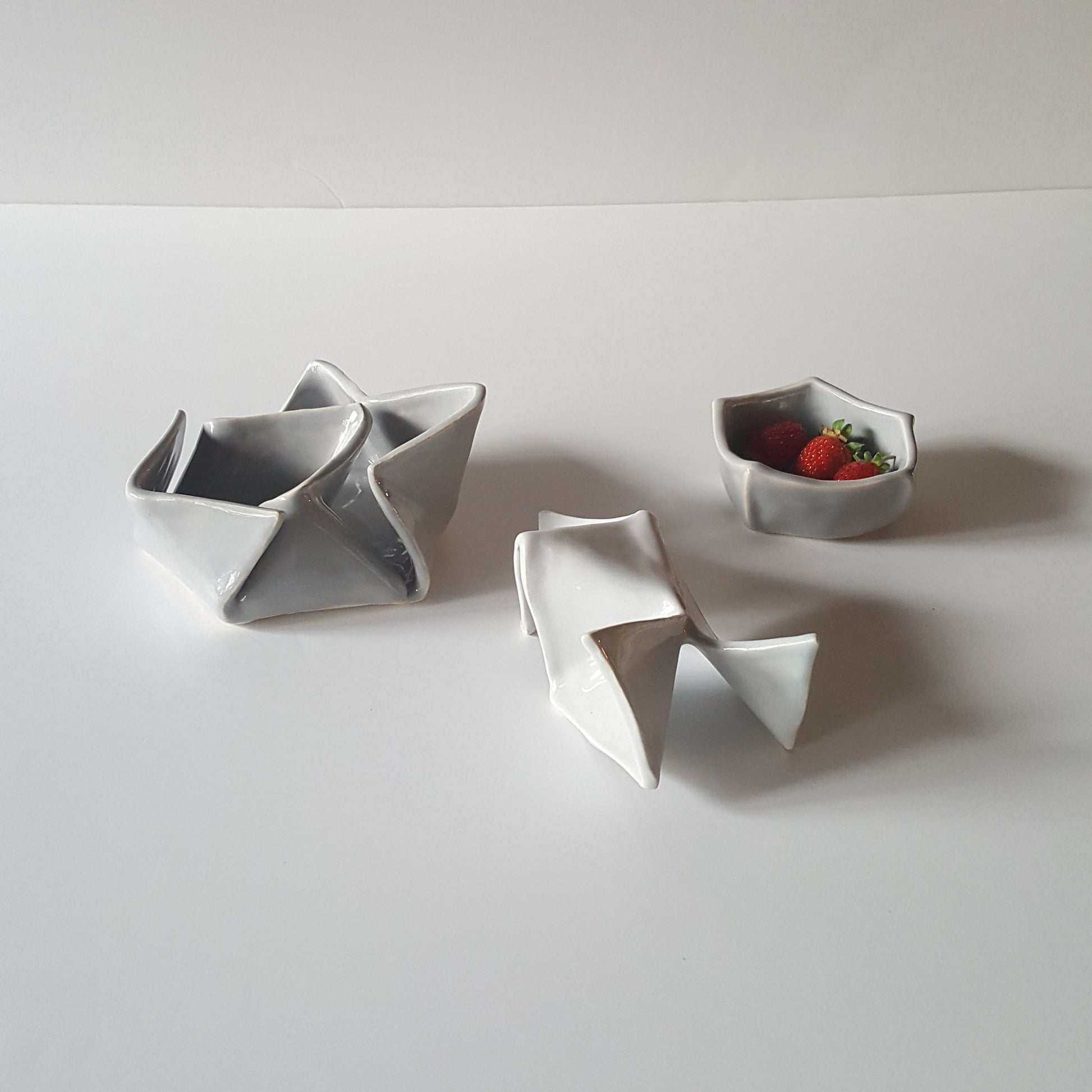 It is part of the Origami Series of handmade ceramic objects inspired by the art of paper folding.