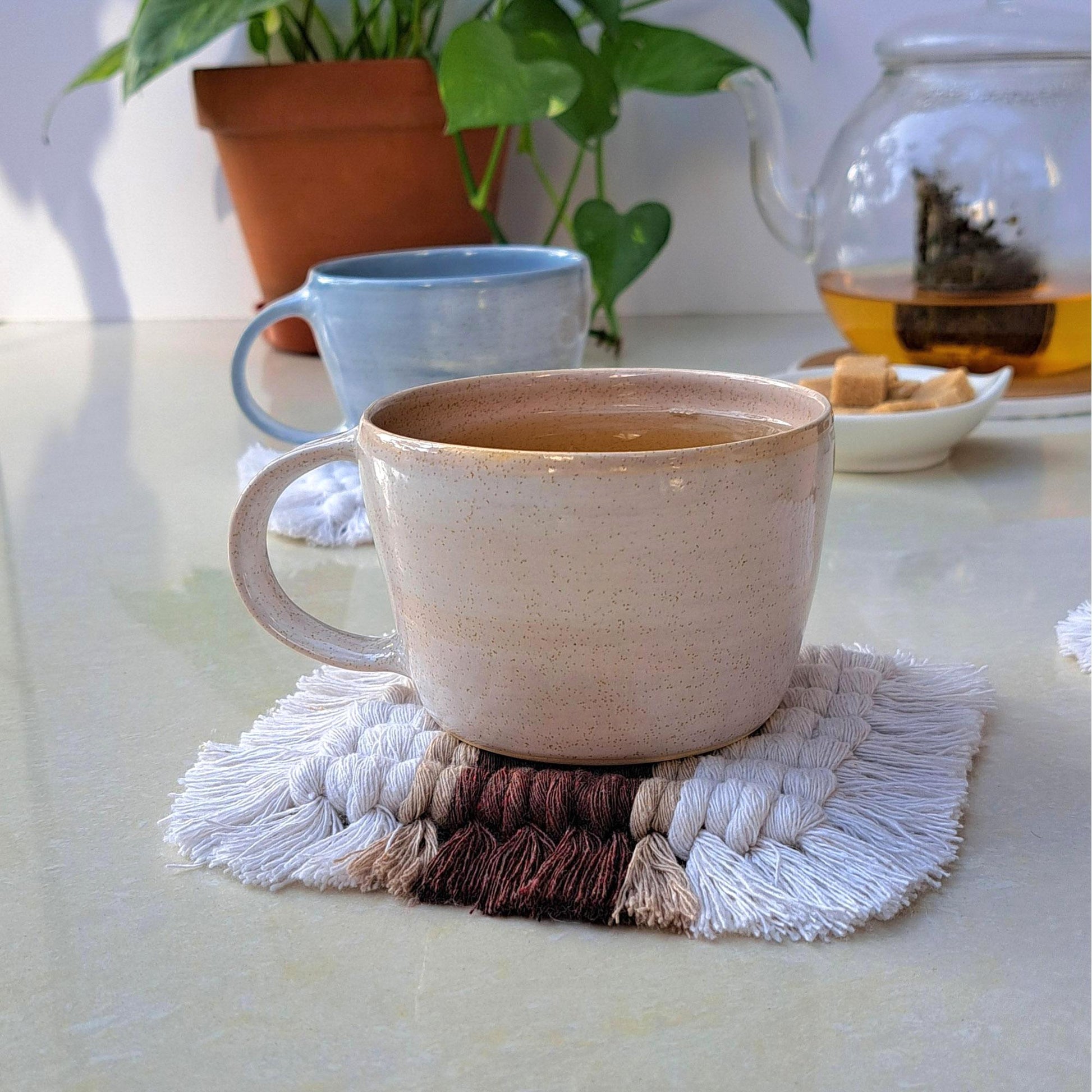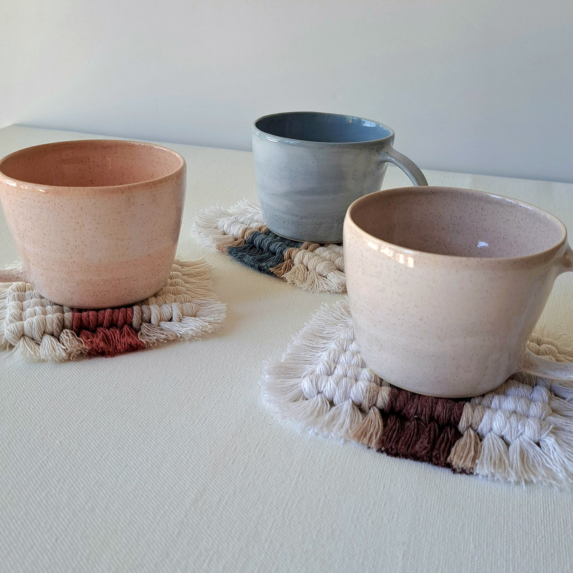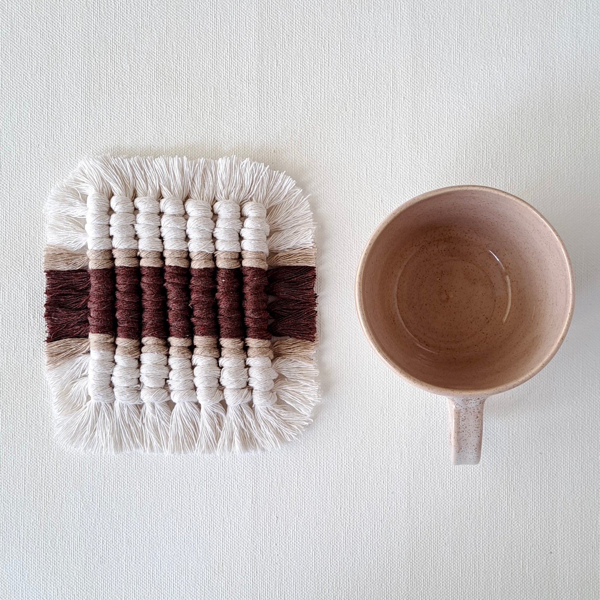 Macramé coaster handmade by Mayssa Tayar with 100% cotton cord